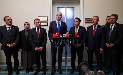Türkiye Büyük Millet Meclisi Başkanı Numan Kurtulmuş (sol 4), Yeni Yol Partisi Grup Başkanı Bülent Kaya'yı (sağ 4) Meclis’teki parti grubunda ziyaret etti. Kurtulmuş ve Kaya, görüşme sonrası açıklamalarda bulundu.