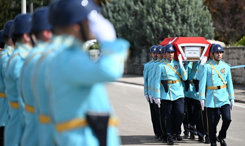 Eski Sanayi ve Teknoloji Bakanı Abdulkerim Doğru için TBMM'de cenaze töreni düzenlendi. Törene, Doğru'nun ailesi ve yakınlarının yanı sıra MHP Genel Başkanı Devlet Bahçeli (sol 3), TBMM Başkanvekili Celal Adan (sağda), eski Meclis Başkanı Bülent Arınç (solda) ve milletvekilleri ile Meclis çalışanları katıldı.