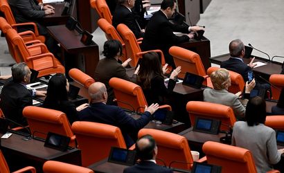 Oturumda DEM Parti milletvekilleri ise bazı belediyelere yapılan görevlendirmelere tepki göstererek, birleşimin açılışında ve oturumun bir bölümünde sıralara vurarak slogan attı. Meclis Başkanvekili Karaca, bu durum üzerine birleşime üç kez ara vermek zorunda kaldı.