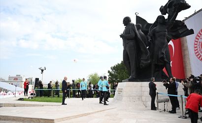 TBMM Başkanı Numan Kurtulmuş, Atatürk Anıtı'na kırmızı ve beyaz karanfillerden oluşan bir çelenk bıraktı. Çelenk bırakma işleminin ardından saygı duruşunda bulunuldu ve İstiklal Marşı okundu.