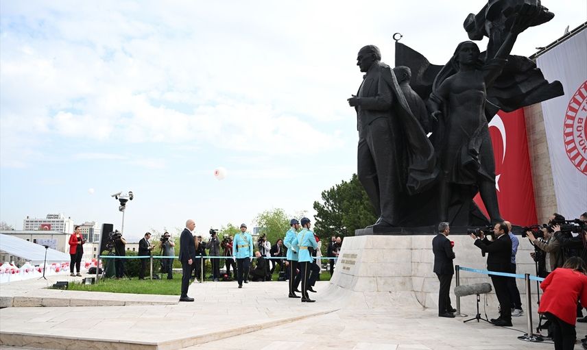 Türkiye Büyük Millet Meclisi (TBMM) açılışının 105. yıl dönümü ve 23 Nisan Ulusal Egemenlik ve Çocuk Bayramı kutlamaları kapsamında, Meclis'teki Atatürk Anıtı önünde bir tören düzenlendi.