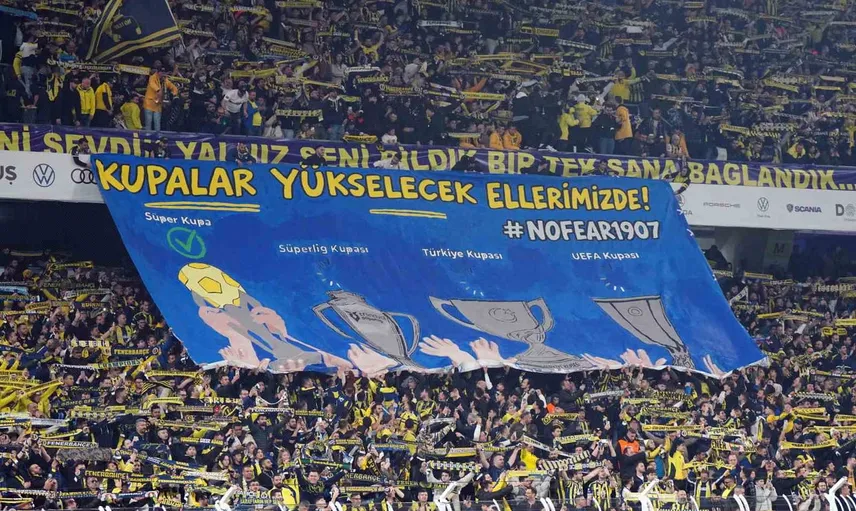 Maraton üst tribününde açılan 'Biriz, Birlikteyiz, Şampiyon Olacağız' pankartıyla destek mesajı verilirken, Kuzey tribününde üzerinde 'Kupalar yükselecek ellerimizde' yazılı ve Turkcell Süper Kupa, Trendyol Süper Lig, Ziraat Türkiye Kupası ile UEFA Avrupa Ligi kupalarının yer aldığı pankart açıldı.