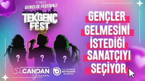 Tekirdağ Büyükşehir Belediyesi’nin 3. TEK Genç Fest’inde sahne alacak sanatçılar, gençlerin internet oylamasıyla belirlenecek; anket 19 Nisan’a kadar açık.