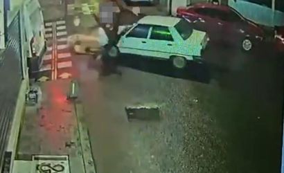 Kaza anı anbean kayda geçti. Görüntülerde, çarpışmanın hemen ardından otomobilden inen sürücü ve yolcunun yerdeki yaralıya baktıkları, kısa süre sonra ise olay yerinden ayrıldıkları görülüyor.