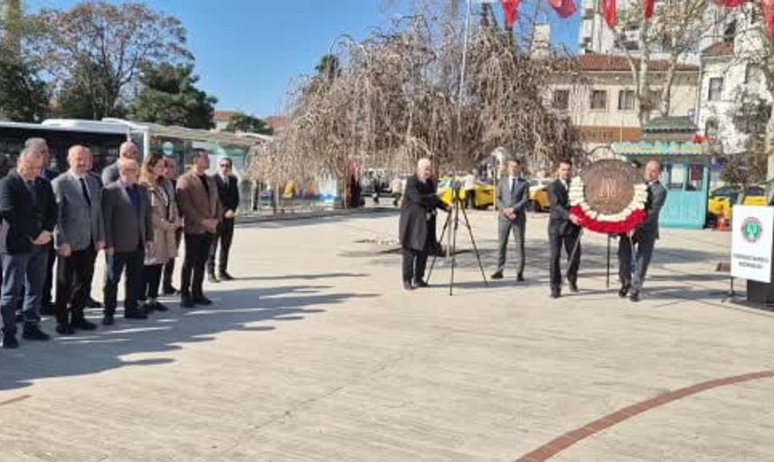 Tören, saygı duruşu ve İstiklal Marşı ile başladı. Ardından Atatürk heykeline çelenk sunuldu.