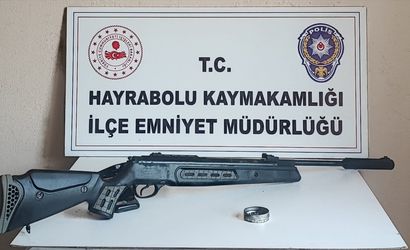 Zanlının evinde yapılan aramada bir havalı tüfek ve 67 saçma ele geçirildi.