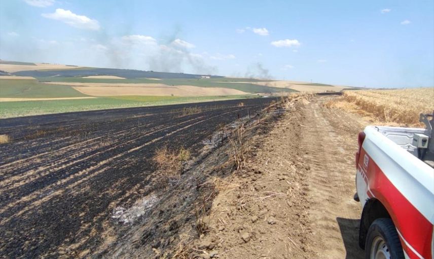 Tekirdağ'ın Çorlu ilçesinde çıkan yangında 70 dönüm ekili buğday tarlası zarar gördü.