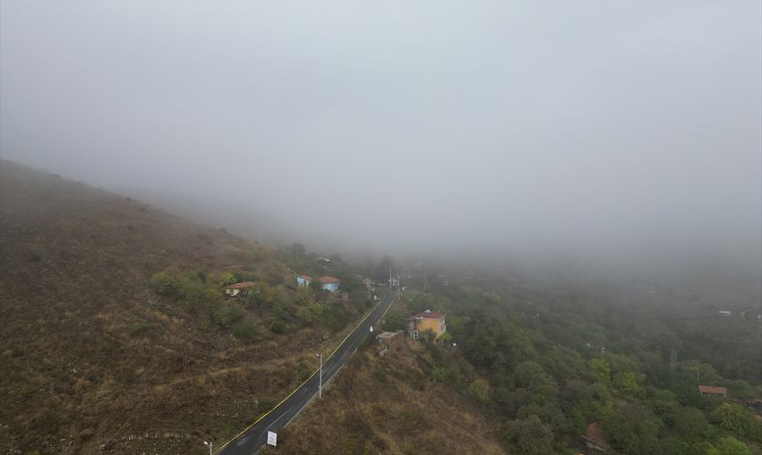 Yüksek kesimlerde etkili olan sis, dronla havadan görüntülendi
