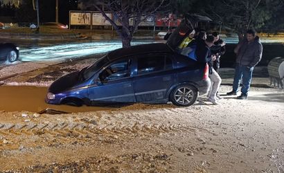 Tekirdağ'ın Çerkezköy ilçesinde meydana gelen içme suyu isale hattı patlamasında, şehit Teğmen Akın Caddesi üzerinde bir otomobil çukura düştü. Patlama sonucu oluşan çukur, yoldan geçen bir otomobilin içine düşmesine sebep oldu.
