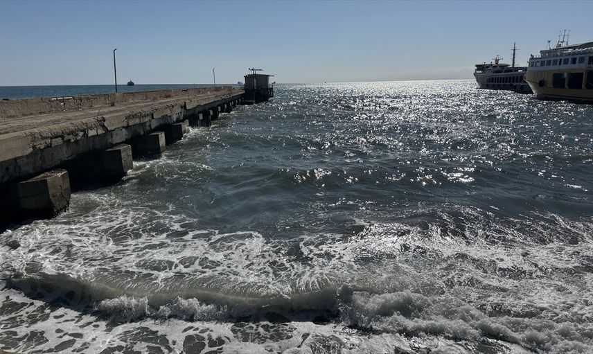 Marmara Denizi'nde etkili olan poyraz, Tekirdağ'da deniz ulaşımında aksamalara neden oluyor.