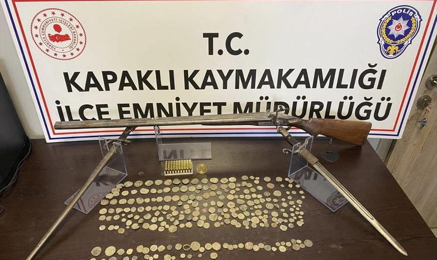 Tekirdağ'ın Kapaklı ilçesinde gerçekleştirilen bir operasyon sonucu, tarihi eser niteliğinde olduğu değerlendirilen 256 obje ile birlikte 2 Osmanlı merasim süngüsü, 1 tüfek ve 50 tabanca fişeği ele geçirildi. İl Emniyet Müdürlüğü ekipleri, tarihi eser kaçakçılığı yapıldığına dair aldıkları ihbar üzerine iş yerinde detaylı bir arama gerçekleştirdi.