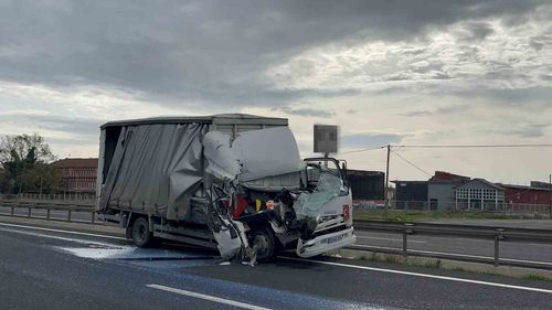 Tekirdağ'da tıra çarpan mürekkep yüklü kamyonet hurdaya döndü; sürücü yara almadan kurtuldu