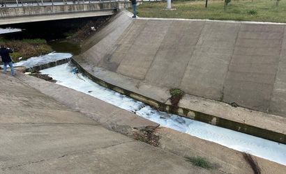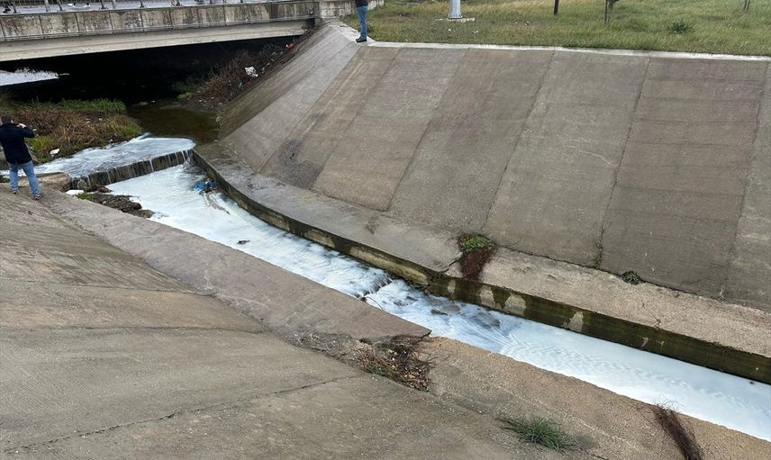 Tekirdağ'ın Çerkezköy ilçesindeki Kavak Deresi'nin rengi beyaza büründü.