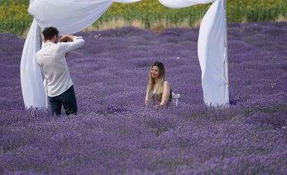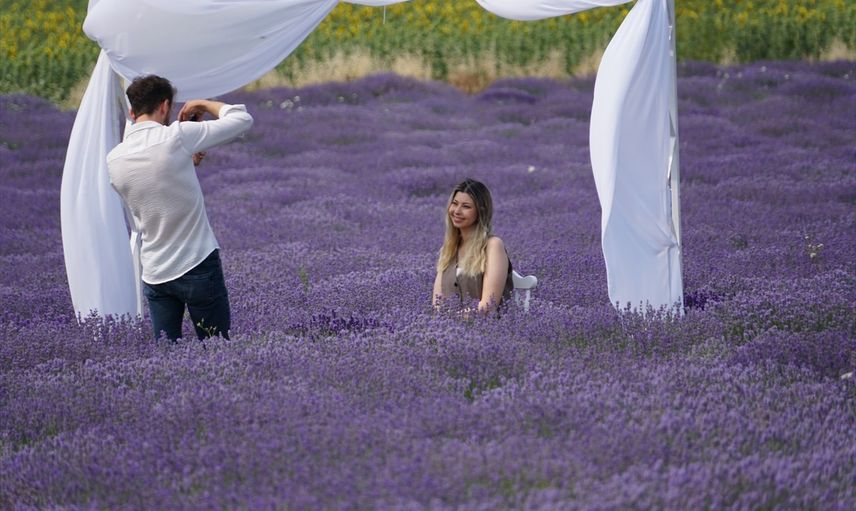Yakın ülkelerden ve diğer illerden gelen ziyaretçiler, lavanta tarlalarında oluşturulan dekorların önünde en güzel fotoğraf karelerini yakalamaya çalıştı. Burası, doğal stüdyo olarak da işlev görüyor; ziyaretçiler burada doğayla iç içe keyifli vakit geçiriyor.