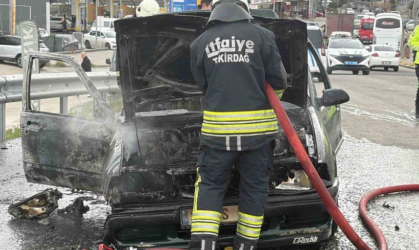 Kapaklı'da seyir halindeki otomobil alev aldı