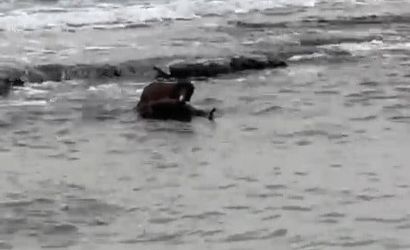 Nesli tehlike altında bulunan su samuru, Tekirdağ sahil kesiminde sabah saatlerinde sahile yakın bir noktada deniz yüzeyinde avlanırken cep telefonu kamerasıyla kaydedildi.