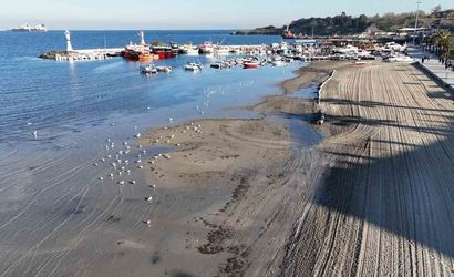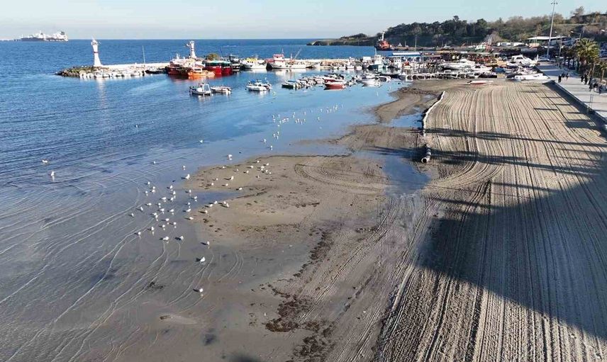Tekirdağ Marmaraereğlisi sahilinde deniz çekilmesi drone ile görüntülendi