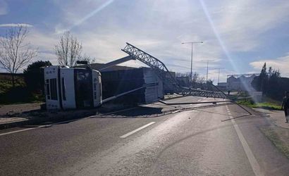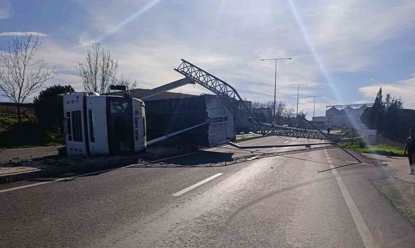 Tekirdağ Muratlı'da kamyon damperi devrilmeye ve direklerin yıkılmasına neden oldu