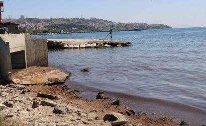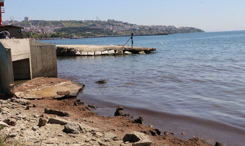 Tekirdağ'da kuvvetli rüzgar nedeniyle sahilin bir kısmı kırmızı yosunla kaplandı.