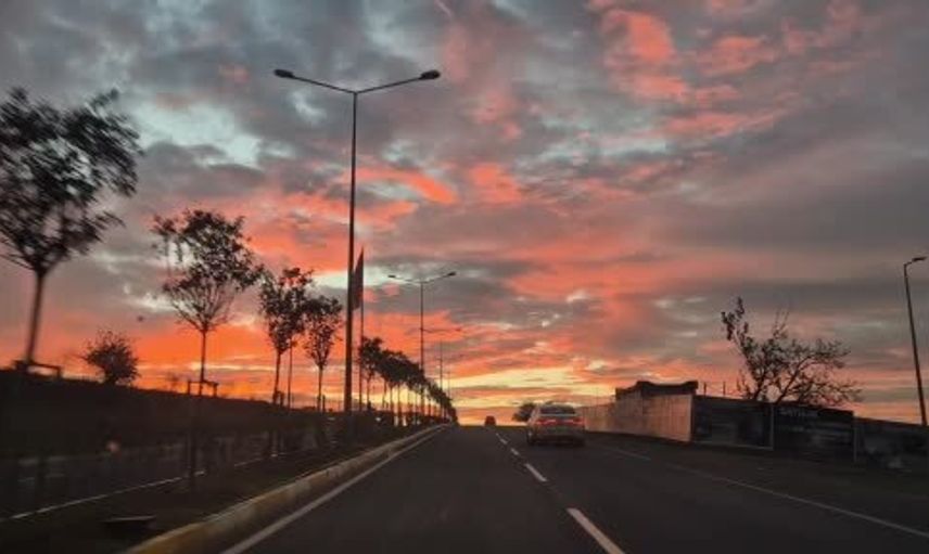 Sabahın erken saatlerinde işe gitmek üzere yollara çıkanlar, gökyüzünde adeta bir renklerin dansı izlendiğini belirtti. Ortaya çıkan görüntüler, bölgedeki sahil hattında kartpostallık sahneler oluşturdu.