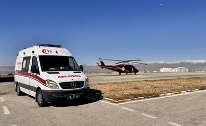 Aynı ilçedeki hastaneye doğum sancısı şikayetiyle başvuran 34 yaşındaki Fadime B., kendisinin ve bebeğin sağlık durumunun sıkıntılı olması nedeniyle zaman kaybedilmemesi amacıyla ambulans helikopterle Erzurum'a getirildi.