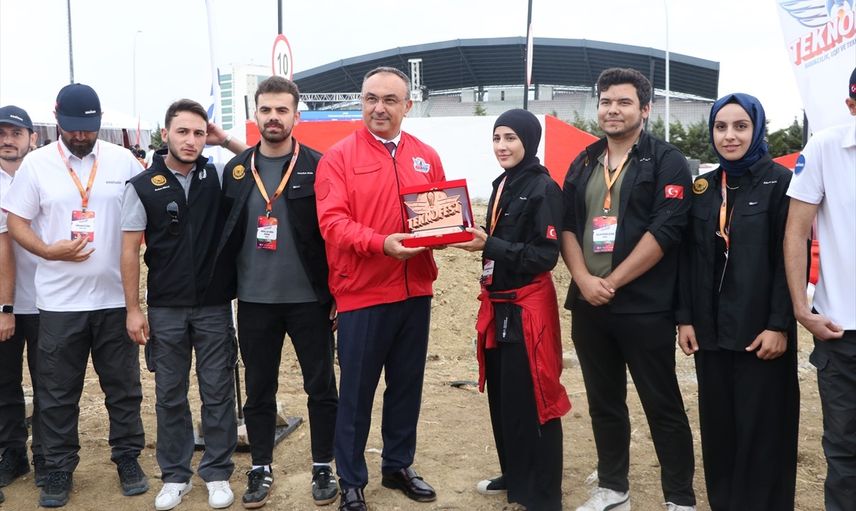 Tekirdağ'da yapılan TEKNOFEST İnsansız Kara Aracı (İKA) Yarışması tamamlandı. Tekirdağ Namık Kemal Üniversitesi (NKÜ) Stadyumu'nda düzenlenen yarışmaya, 28 takım ve yaklaşık 300 öğrenci katıldı. Öğrenciler, geliştirdikleri insansız kara araçlarıyla kıyasıya bir mücadele ortaya koydu. Tekirdağ Valisi Recep Soytürk (sol 4), yarışmada en iyi tasarım ödülü alan İTÜ Rake takımı ile en iyi takım ödülünü alan Ankebut takımına ödüllerini verdi.