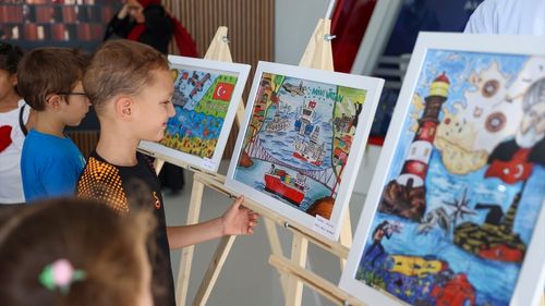 Mavi Vatan Resim Yarışması'nda başarı gösteren öğrencilerin eserleri TEKNOFEST Mavi Vatan etkinliğinde ziyaretçilere sunuldu.