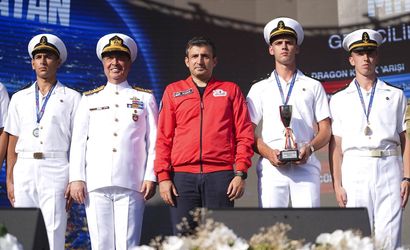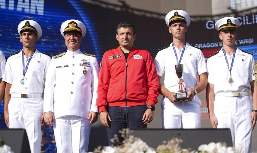 Anadolu Ajansının (AA) Global İletişim Ortağı olduğu, Türkiye Teknoloji Takımı Vakfı (T3 Vakfı) yürütücülüğünde, Sanayi ve Teknoloji Bakanlığı ve Milli Savunma Bakanlığı işbirliğiyle gerçekleştirilen "TEKNOFEST Mavi Vatan", İstanbul Tersanesi Komutanlığı'nda son gün etkinliklerinin ardından kapanış töreniyle sona erdi. Kapanış töreninde, Milli Savunma Bakanlığı ve ASELSAN yürütücülüğünde düzenlenen İnsansız Su Altı Sistemleri Yarışması'nda ödül kazanan takımlara ödülleri TEKNOFEST Yönetim Kurulu ve T3 Vakfı Mütevelli Heyeti Başkanı Selçuk Bayraktar (ortada) ve Deniz Kuvvetleri Komutanı Oramiral Ercüment Tatlıoğlu (sol 8) tarafından verildi.