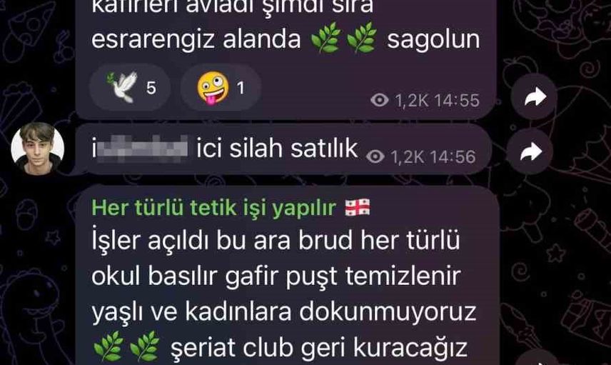 KAHRAMANMARAŞ VE ŞANLIURFA’DA MEYDANA GELEN OKUL SALDIRILARI SONRASI TELEGRAM GRUPLARINDA SALDIRILARI ÖVEN MESAJLAR KAN DONDURDU. GRUPLARLA YAPILAN KONUŞMALARDA SALDIRGANLARIN ÖVÜLDÜĞÜ VE YENİ SALDIRILAR İÇİN TARİH VERİLDİĞİ GÖRÜLDÜ. EMNİYET GÜÇLERİ, PROVOKASYON İÇERİKLİ PAYLAŞIMLAR İÇİN İNCELEME BAŞLATTI.