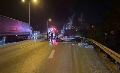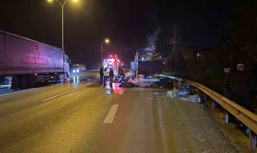 Olay, TEM Otoyolu Derince Yenikent mevkiinde meydana geldi. İstanbul’dan Kocaeli istikametine tekstil ürünü taşıyan kamyonun sürücüsü, seyir halindeyken aracın arka kısmından dumanlar yükseldiğini fark etti. Durumu kontrol etmek isteyen sürücü, aracı yol kenarında bir köprü altındaki müsait alana çekti. Kısa sürede büyüyen alevler kamyonun dorsesindeki tüm yükü sardı.