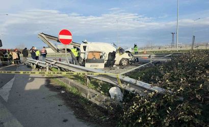TEM Otoyolu Düzce geçişinde bariyerlere saplanan hafif ticari araç: 2 kişi hayatını kaybetti
