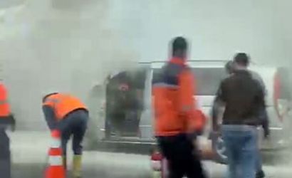 TEM Otoyolu'nun Düzce kesiminde, Bolu Dağı Tüneli istikametinde seyir halindeyken motor kısmından alev alan minibüsteki yangın, itfaiye ekiplerinin müdahalesiyle söndürüldü.