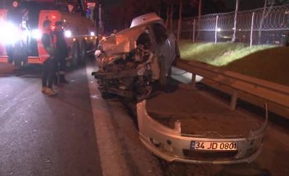 Çarpmanın etkisiyle otomobil savrularak bariyerlerin üzerine çıktı ve hurdaya döndü. Kazada otomobil sürücüsü ile yanında bulunan bir kişi yaralandı.