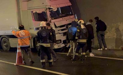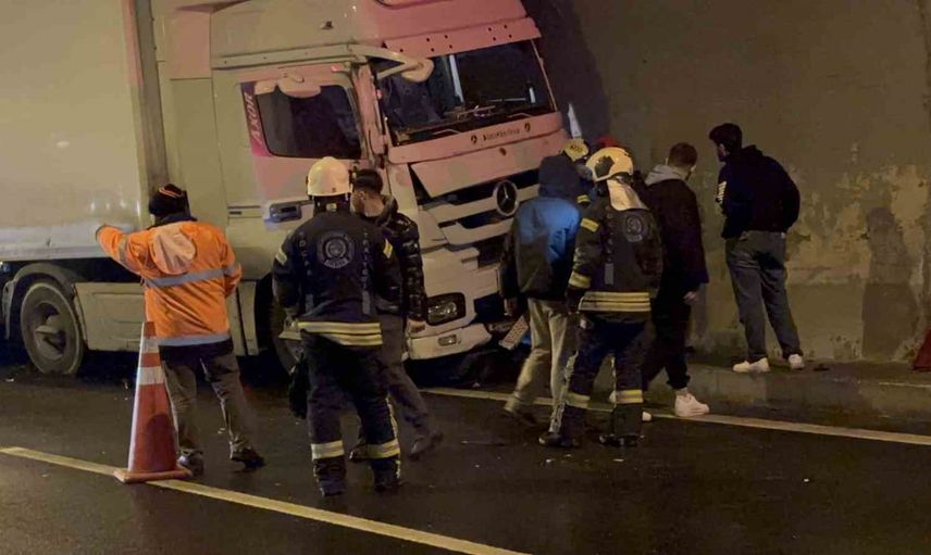 Çarpışma sonucu otomobil, tünel duvarı ile tır arasında kalarak hurdaya döndü. Olayda yaralanan olmadığı bildirildi.