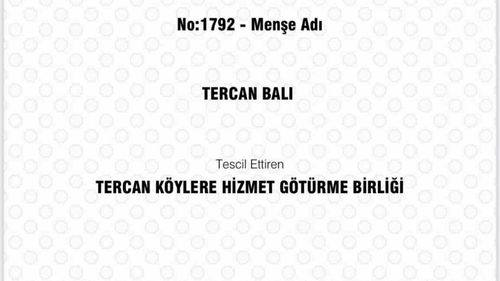 Tercan'ın florasında üretilen Tercan Balı, Türk Patent ve Marka Kurumu tarafından coğrafi işaret belgesiyle tescil edilerek Erzincan'ın 14. coğrafi işaretli ürünü oldu.