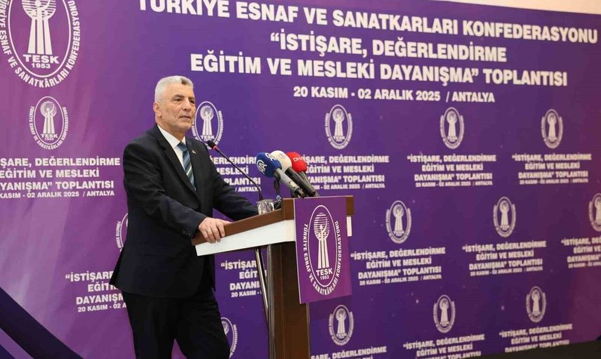 Türkiye Esnaf ve Sanatkarları Konfederasyonu (TESK) Genel Başkanı Bendevi Palandöken, Antalya'da düzenlenen ve dört oturum halinde yürütülen "TESK İstişare, Değerlendirme, Eğitim ve Mesleki Dayanışma Toplantısı"nda vergi ve prim adaletine ilişkin taleplerini dile getirdi.