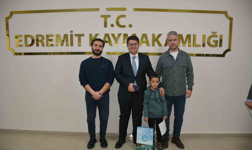 Edremit Kaymakamı Ömer Ahmet Özdemir de Tomay'ı makamında kabul ederek, başarısından dolayı kutladı.
