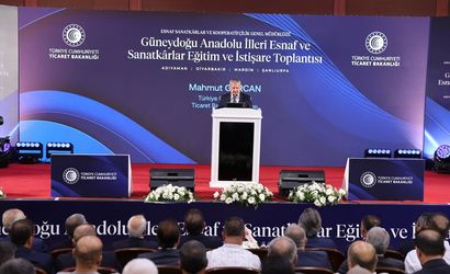 Ticaret Bakan Yardımcısı Mahmut Gürcan (Fotoğrafta), Ticaret Bakanlığınca esnaf ve sanatkarların bilgiye erişimini artırmak, karşılaştıkları sorunlara yerinde çözümler üretmek ve bölgesel kalkınmaya katkı sağlamak amacıyla Şanlıurfa'da düzenlenen "Eğitim ve İstişare Toplantısı"na katıldı. Gürcan, burada bir konuşma yaptı.