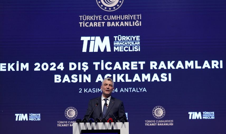 Ticaret Bakanı Ömer Bolat, Antalya'nın Serik ilçesindeki bir otelde düzenlenen Ekim 2024 dış ticaret rakamlarının açıklandığı toplantıya katıldı.