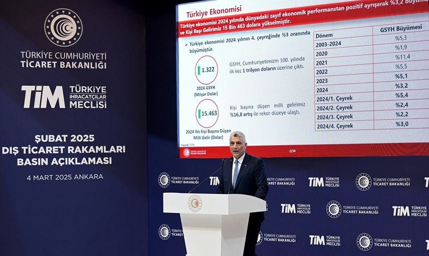 Bakan Bolat, Türkiye İhracatçılar Meclisi (TİM) Başkanı Mustafa Gültepe ile düzenlediği basın toplantısında, şubat ayı dış ticaret verilerine ilişkin önemli açıklamalarda bulundu. Kararlılıkla uygulanan ekonomik programın sonuçlarını almaya devam ettiklerini ifade eden Bolat, 2024 yılındaki büyüme hedefinin net mal ve hizmetler ihracatının 1,1 puan katkı sağlamasını umduklarını söyledi.