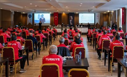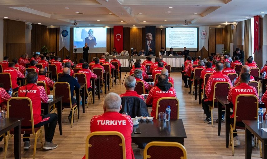 Türkiye İşitme Engelliler Spor Federasyonunun (TİESF) 2024-2025 futbol ve basketbol sezonlarının değerlendirme toplantısı başkanlığa yeni seçilen Dursun Gözel'in (ortada) liderliğinde Ankara'da yapıldı.