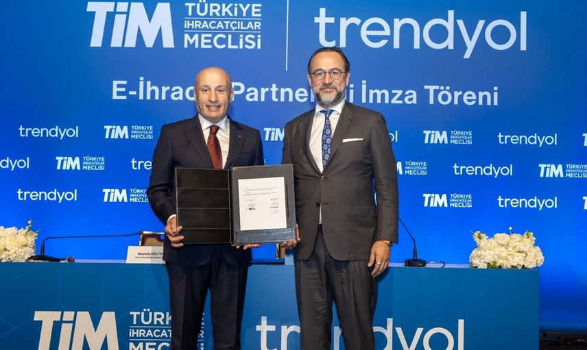 Türkiye İhracatçılar Meclisi (TİM) ve Trendyol, Türkiye'nin e-ihracat ekosistemini güçlendirmek amacıyla stratejik işbirliği protokolü imzaladı. İstanbul'da düzenlenen törene TİM Başkanı Mustafa Gültepe ve Trendyol Grubu Başkanı Çağlayan Çetin katıldı. Bu işbirliği ile Trendyol, TİM'in e-ihracat partneri olarak Türkiye genelinde e-ihracat farkındalığını artırmayı hedefliyor.