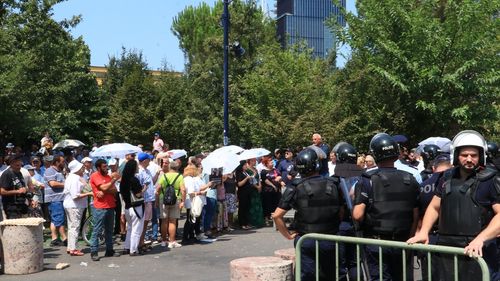 Arnavutluk'ta Tiran Belediyesi önünde yapılan protestolarda Başkan Erion Veliaj'ın istifası talep ediliyor.