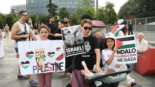 Arnavutluk'un Tiran kentinde Filistin’e destek amaçlı gösteri yapıldı, protestocular Gazze'deki saldırılara karşı çıktı.