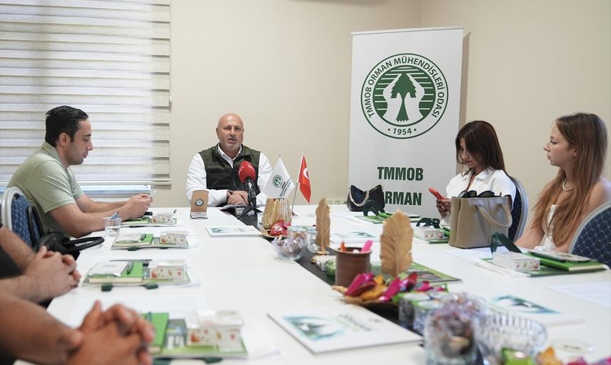 Türk Mühendis ve Mimar Odaları Birliği (TMMOB) Orman Mühendisleri Odası Genel Başkanı Hasan Türkyılmaz, Orman Mühendisleri Odası'nda düzenlenen basın toplantısında konuşma yaptı.