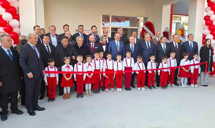 Tören, saygı duruşu ve İstiklal Marşı’nın okunmasıyla başladı. Öğrenciler şarkılar eşliğinde kısa bir gösteri sundu ve açılış kurdelesini minik öğrenciler kesti.