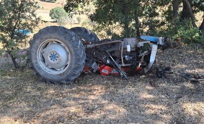 Tokat'ın Artova ilçesine bağlı Aktaş köyünde meydana gelen kazada, kuşburnu toplamak için dağlık bölgeye giden Sadık İşeri'nin kullandığı traktör devrildi.