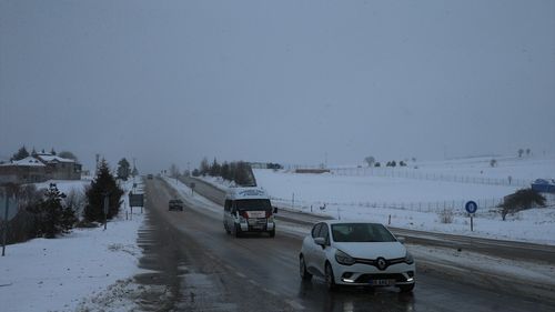 Tokat-Sivas Kara Yolunda Kar Yağışı Etkili Oluyor
