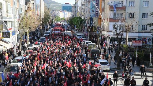Tokat'ta 3 Mayıs Türkçülük Yürüyüşü YapıldıTokat'ta, 3 Mayıs Türkçülük Günü dolayısıyla bir yürüyüş düzenlendi. Cumhuriyet Meydanı'nda toplanan Ülkü Ocakları Tokat İl Başkanlığı üyeleri, mehter takımı eşliğinde Gaziosman Paşa Stadyumu'na kadar yürüyüş gerçekleştirdi.Grup, yürüyüş sırasında "Ne mutlu Türk'üm diyene" sloganları attı…