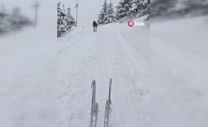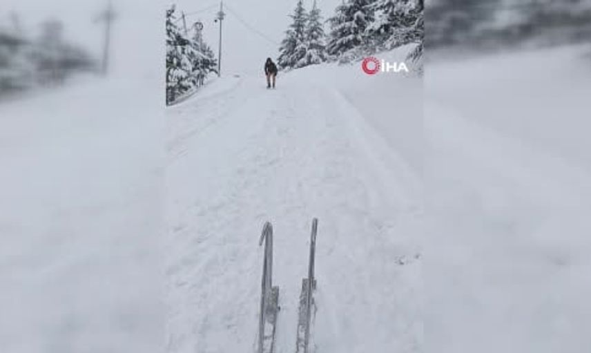 Kar yağışını fırsat bilen Sönmez kardeşler, hazırladıkları kayak takımlarını ayakkabılarına sabitleyerek kaydı. Kimi zaman birbirlerine destek olarak ilerleyen kardeşler, çocukluk hatıralarını yeniden yaşadı.